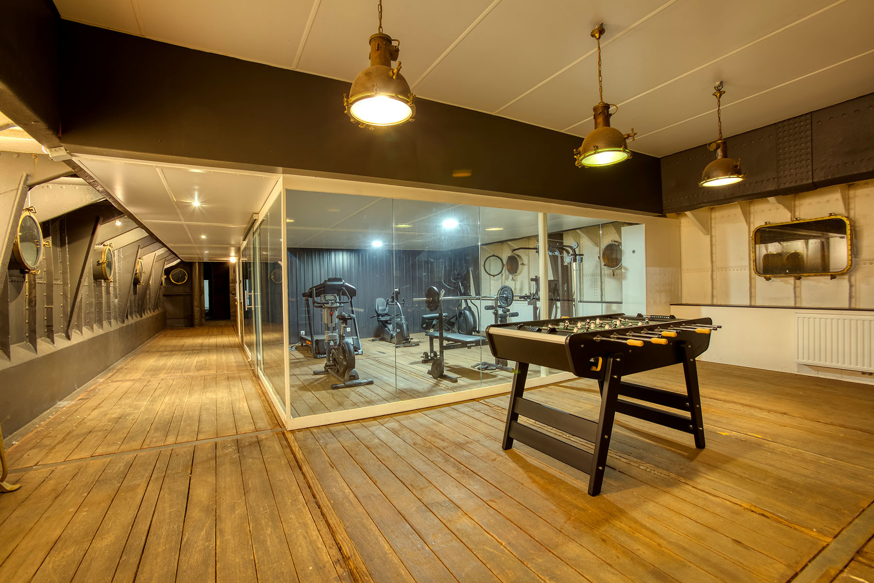 With an area of 40 square meters, our room is equipped with quality Kettler devices to meet all your fitness needs. For your cardio sessions, make use of a treadmill and two stationary bikes, allowing you to customize your workout. The elliptical stepper adds an additional dimension to your routine, offering a variety of exercises to strengthen your endurance.